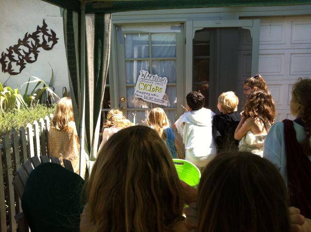 The Cyclops should be your husband or partner. You can trick them into doing this by telling them that they’re “making memories” for your children. (Like “That time Daddy had to go to the ER because Apollo shot an arrow through his one eye. But it was okay because Mommy was already there, having her thumb reattached). Here are the little hellions rousing the Cyclops from his cave:
