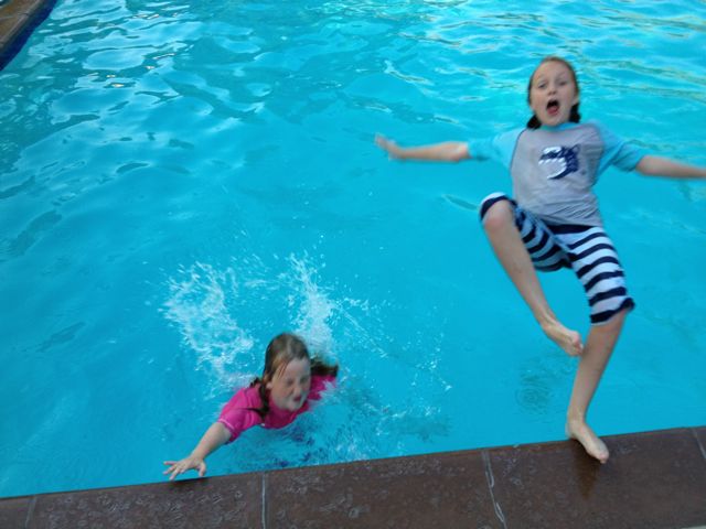 Bridget (8) said: “Let’s go back to the hotel pool!,”