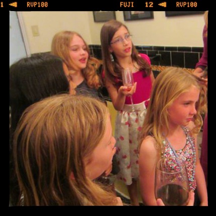 Then I ferried them into my Enshantment makeup room (i.e la toilette) where I curled everyone’s hair and gave them all “smokey eyes,” while Henry — known only to the starlets as Minion — served the girls Coca Cola in champagne glasses.