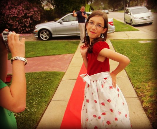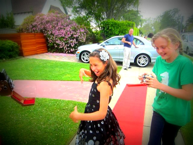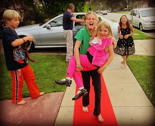 Case in point, when I asked me eldest, Clare, if she’d like her hair and makeup done, her expression indicated that was like asking a fish to walk on land, so I quickly dropped it and assigned her paparazzi duty. But I realized it’s okay to let Bridget and her friends pretend to be movie stars.